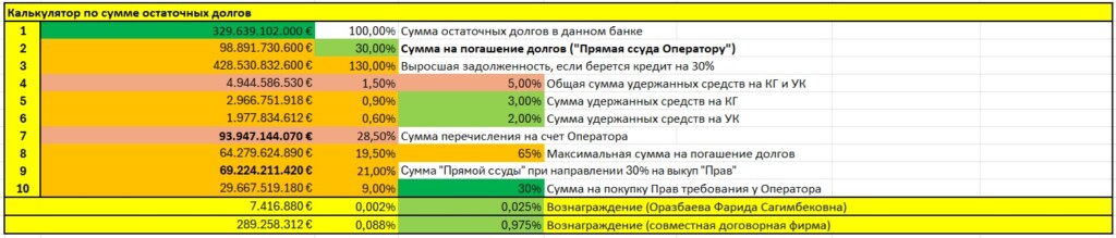 5.2. Определение общей задолженности. На основе собранных данных суммируется остаточная задолженность. Например, как указано выше, сумма может составить € 329.639,102 млн.